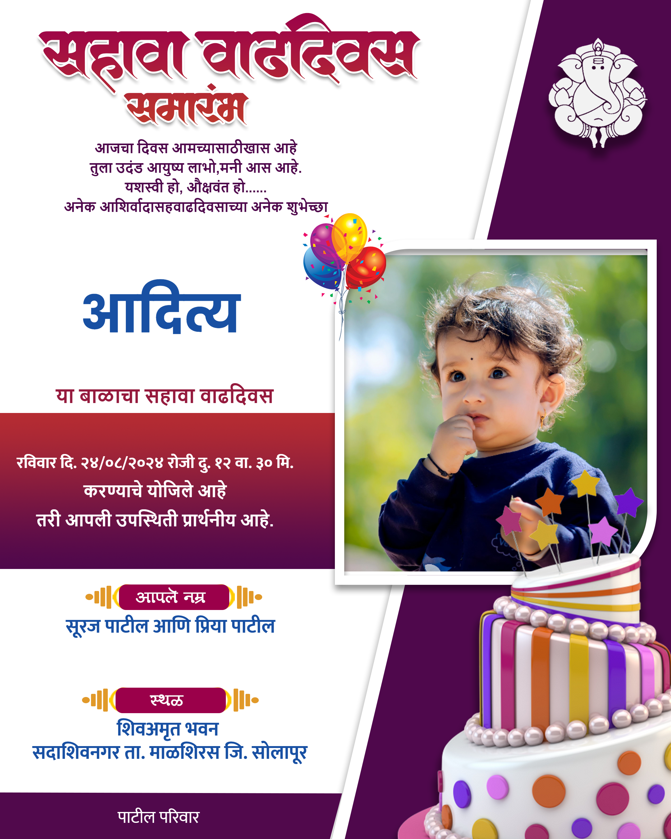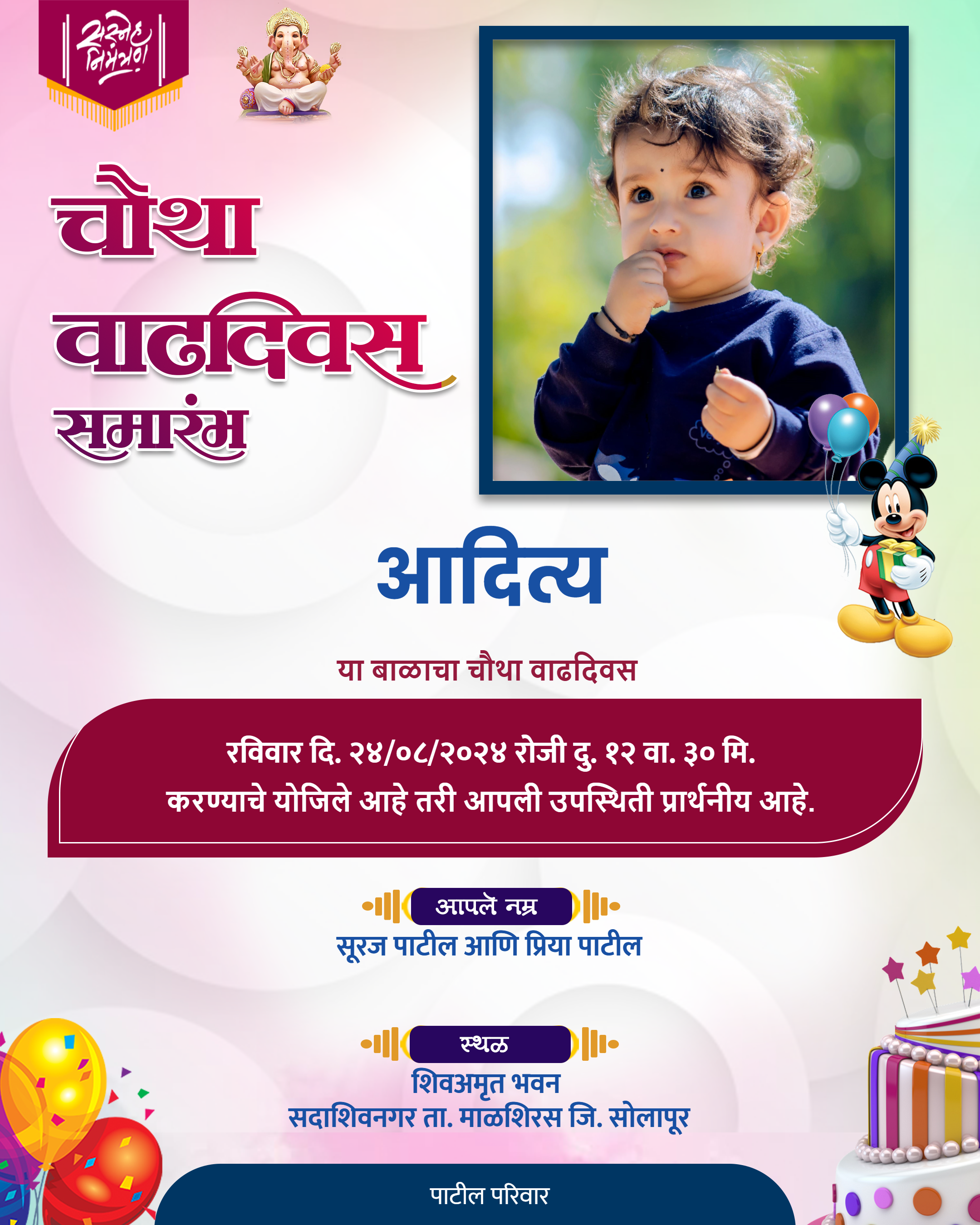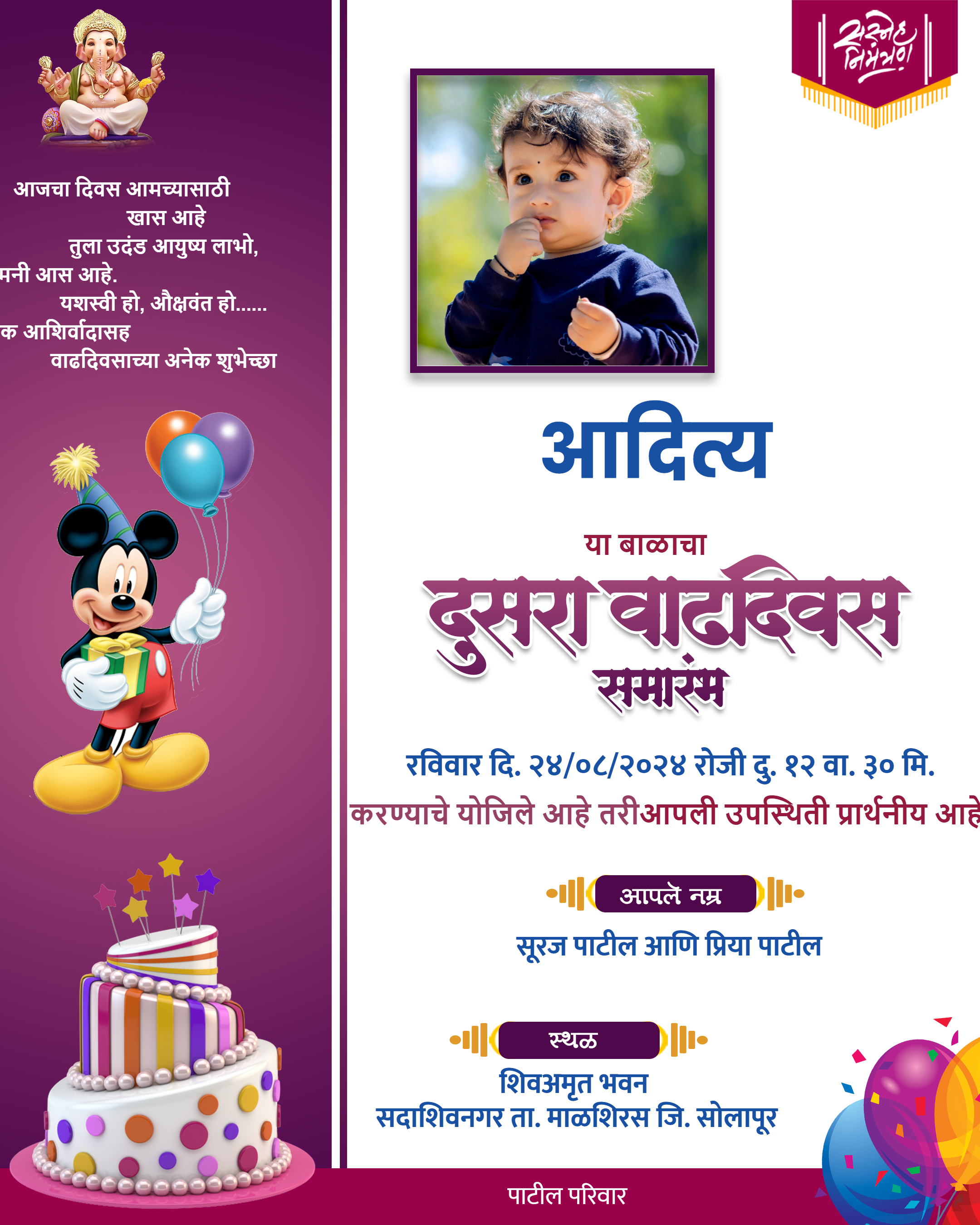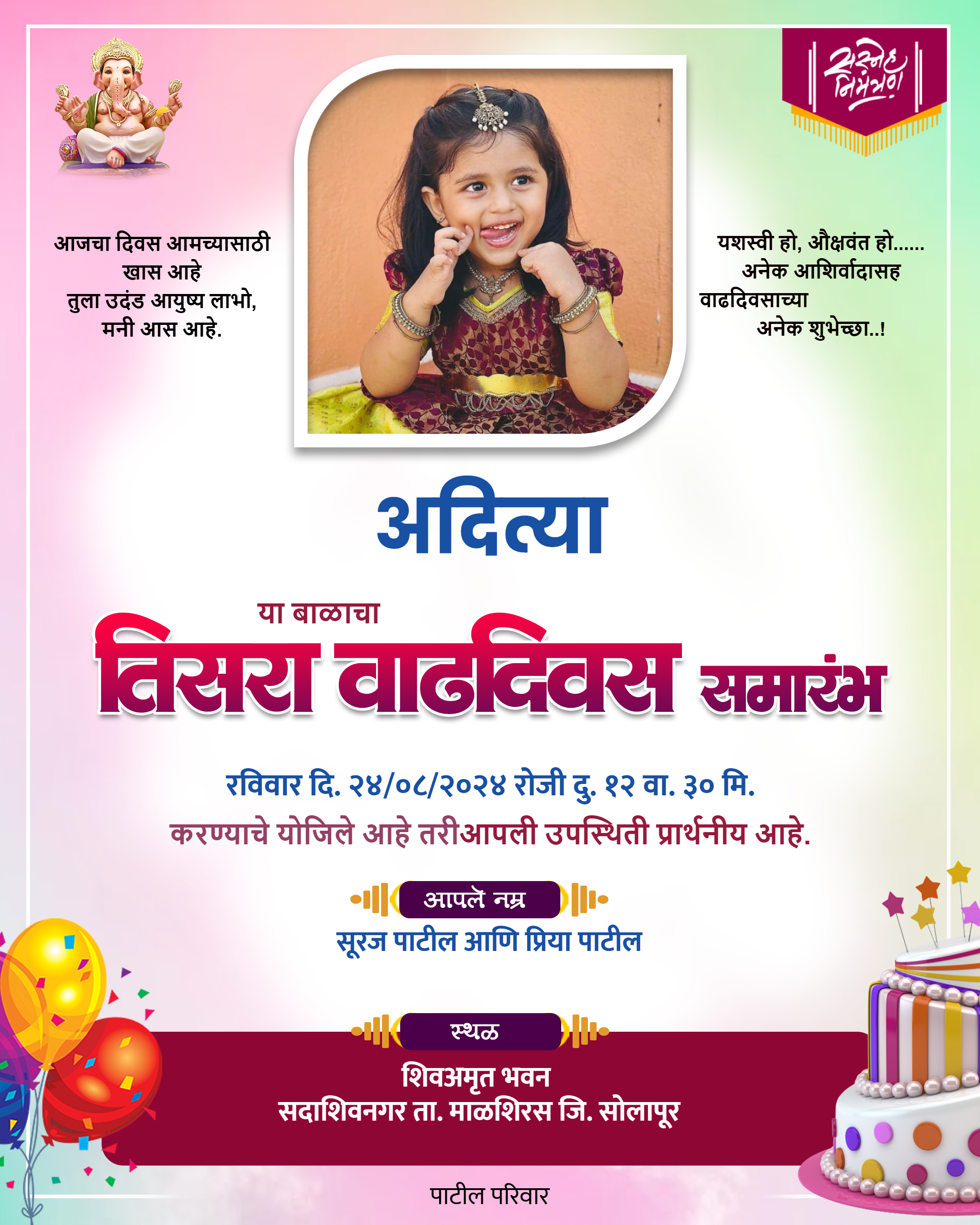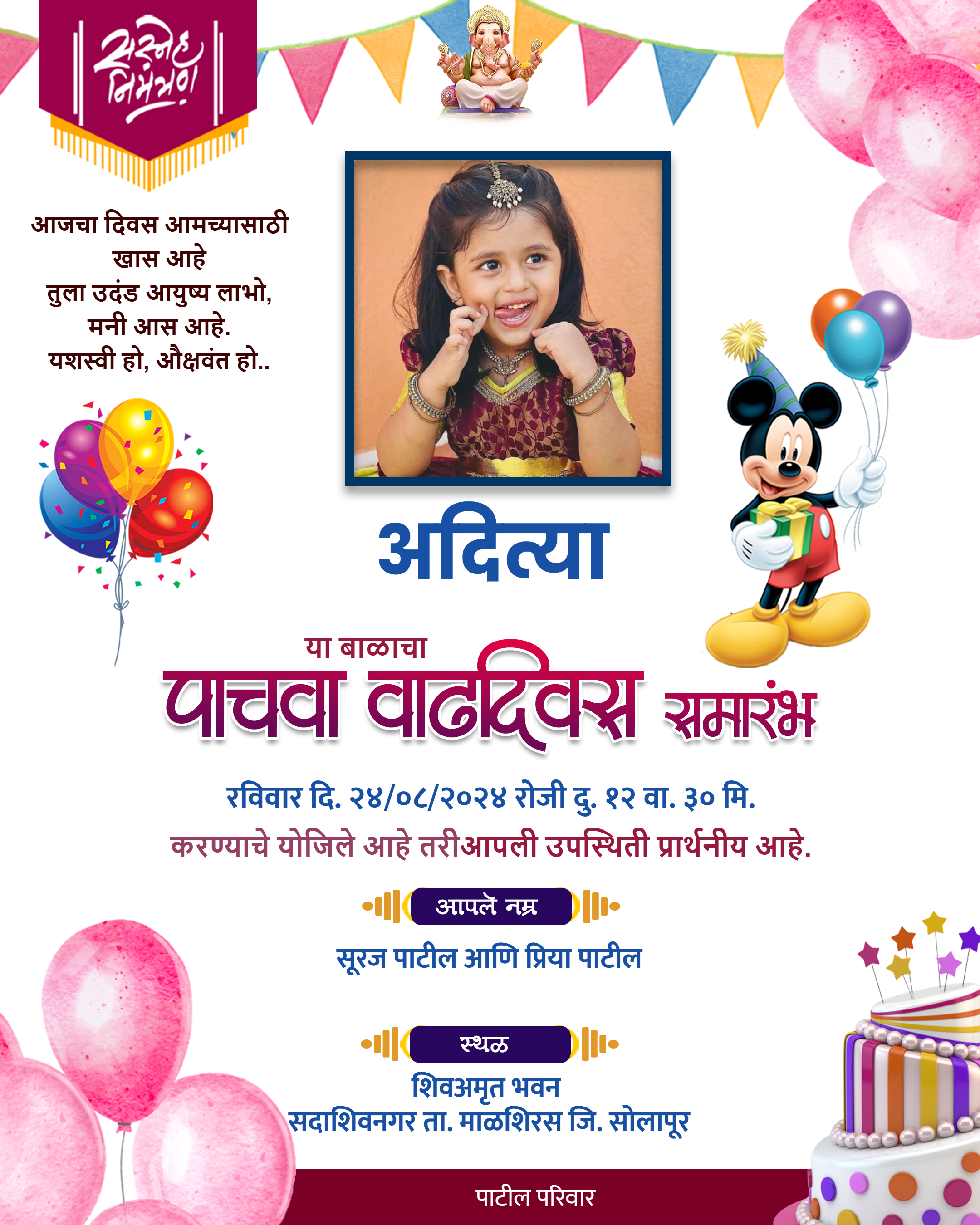🎨 Free Birthday Invitation Card Marathi Download HD Editable