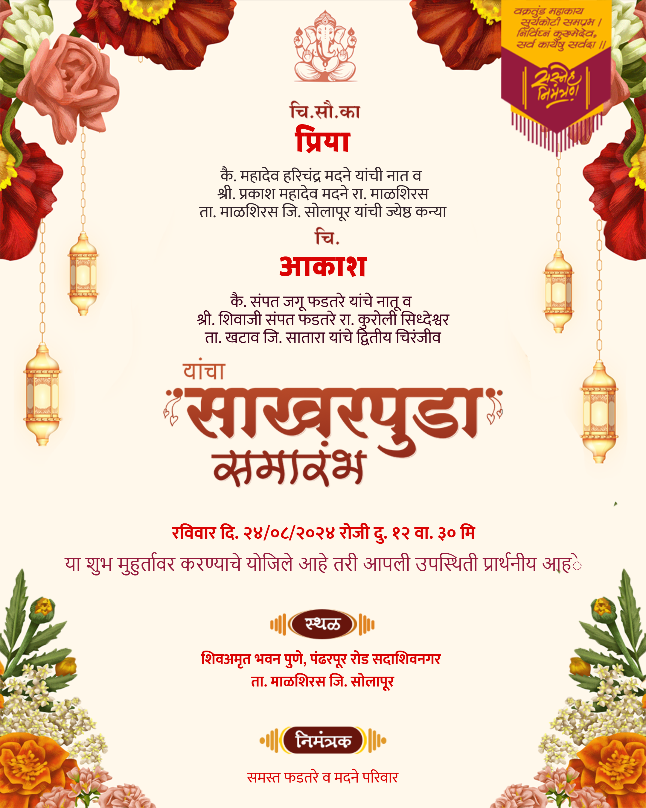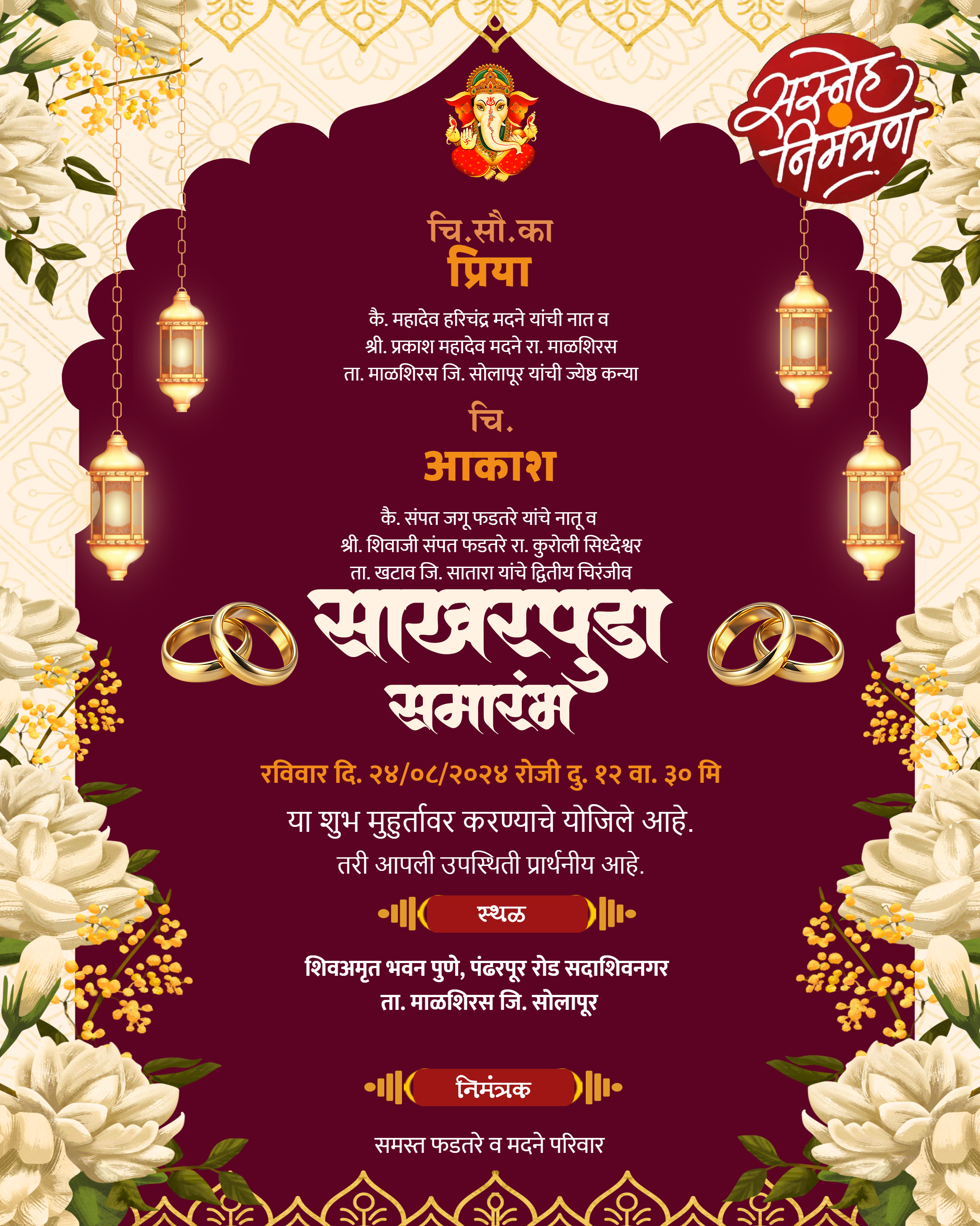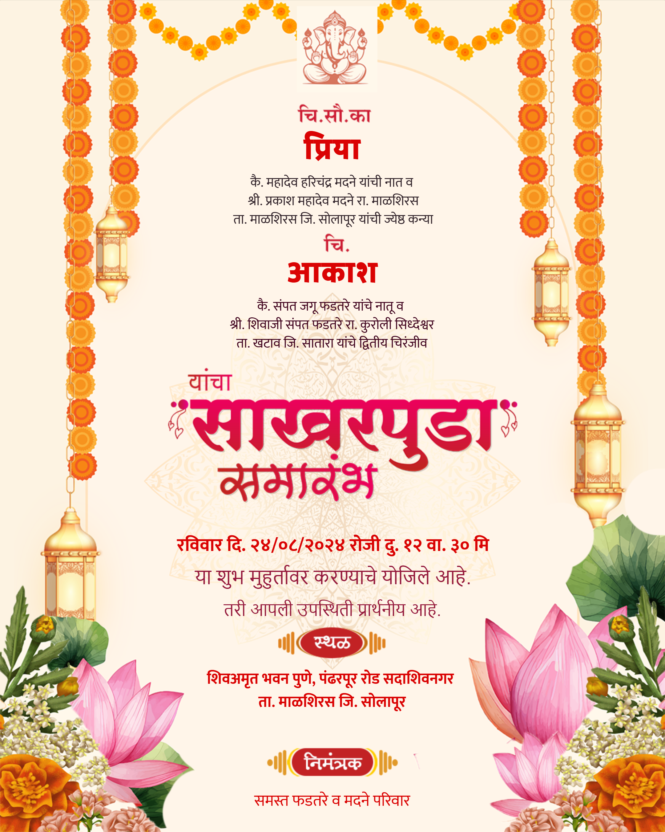 🎨 Free Engagement Invitation Card Marathi Download HD Editable